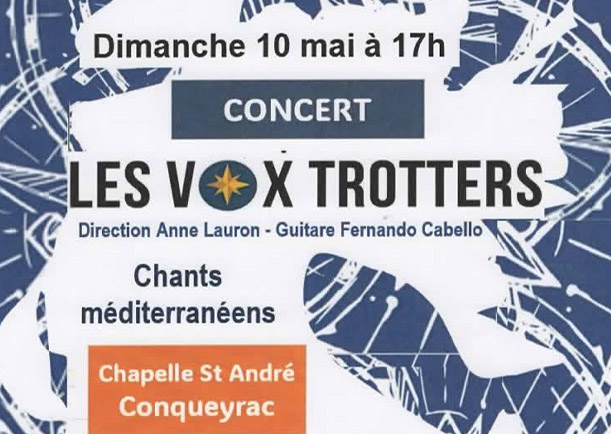 Les Vox Trotter en concert 10 mai- 17h00 - 19h00 La Chapelle Saintt André Dimanche 10 Mai à 17h à La Chapelle St andré Chants méditerranéens Participation au chapeau